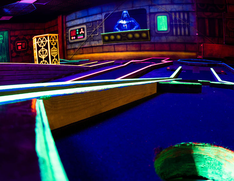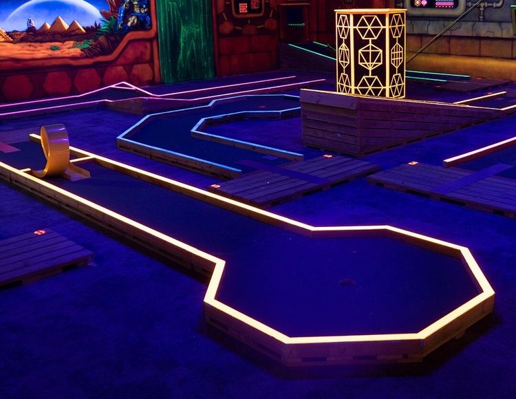 Denna 9-hålsbana, skapad av City Golf Europe, tar den traditionella minigolfupplevelsen till en ny nivå. Här möts nostalgiska sommarminnen med en futuristisk inomhusmiljö där ultraviolett ljus skapar en spännande atmosfär.