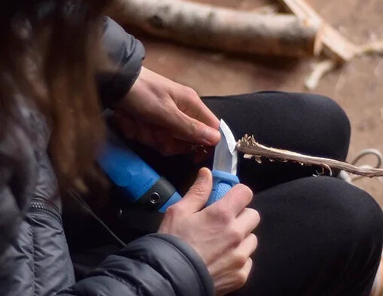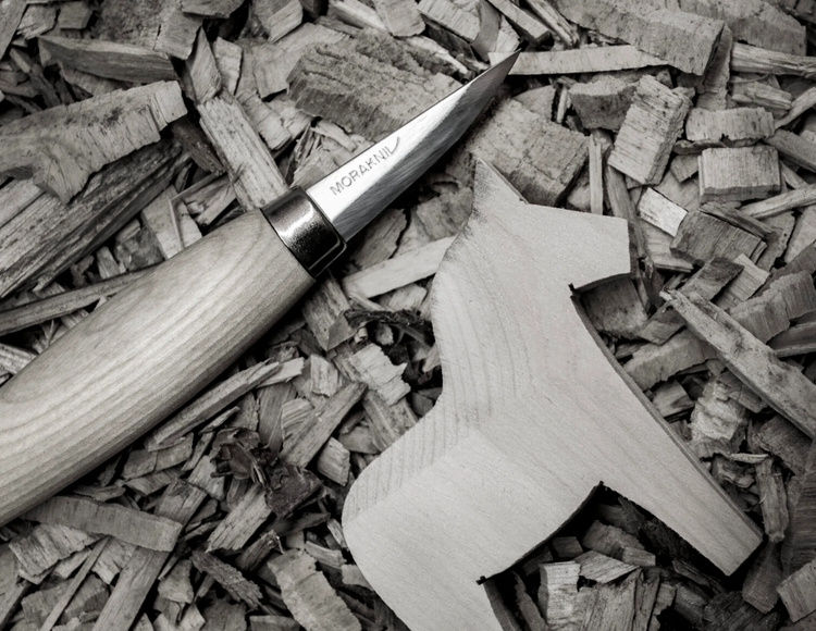 Samla i en ring runt en skuggning och snida bitar i olika storlekar. Mora-knivar delas ut och du får en introduktion till olika räkningstekniker och grepp. Skär en, två eller flera bitar. Det finns också en möjlighet att fortsätta halvfärdiga ämnen för dem som just är igång.