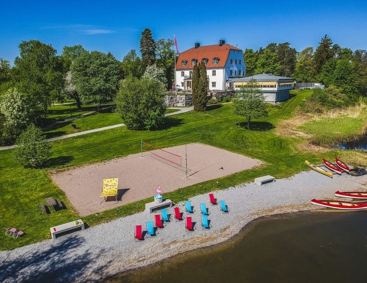 En beachvolleybollplan, krocket- och kubbspel, solstolar och musikanläggning. Guide finns på plats med instruktioner.