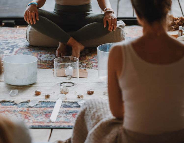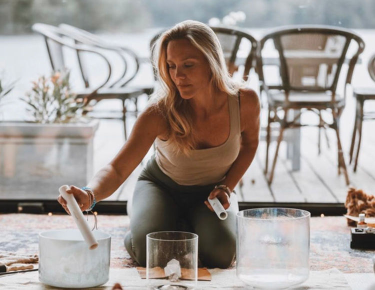 Avslappnande Soundhealing-meditation för företagsgrupper - Alkemiska kristallskålar & naturliga instrument med Victoria Levén från Bohoretreat.
