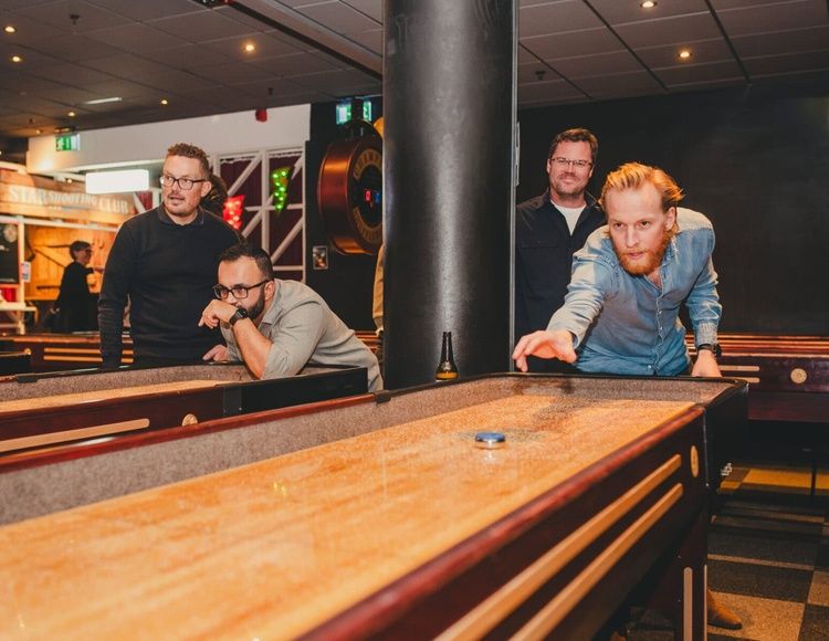 En perfekt aktivitet för både tävlingsinriktade kollegor och avslappnade kompisgäng. Greppa en shufflesten med ena handen och något gott att dricka med den andra, sen är det bara att sikta och spela. Enkla regler, mycket skratt och en lagom dos tävlingsnerv.